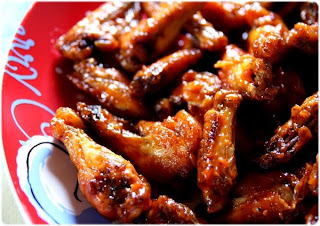 Celle-ci est une version simplifiée des fameuses Buffalo Chicken Wings - une spécialité des alentours de New York très appréciée aux Etats-Unis, que j'avais déjà présentée il y a quelques mois ici. Cette recette ne demande pas de sauces spécifiques et est légèrement moins piquante que la précédente. Traditionnellement - pour se rafraîchir le palais ou se donner bonne conscience, les Buffalo Chicken Wings sont toujours accompagnées de bâtonnets de légumes crus servis avec une sauce froide au bleu.
