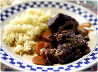 Cette recette est une fusion îles portugaises-continent. En effet, il n'y a pas de sangliers aux Açores. En revanche, l'alcatra est l'ex-libris culinaire de Terceira. Précieusement congelée et emballée par belle-maman, une partie d'un magnifique sanglier chassé dans l'Alentejo par un oncle d'Évora a pris l'avion dans un sac à dos thermique transporté par mon mari. Le sac à dos - et la compagnie aérienne SATA - en ont vu d'autres, car nous n'en sommes pas à notre premier "trafic" de denrées alimentaires : fruits de mer, poissons, charcuteries, herbes aromatiques ou fruits rares survolent souvent l'Atlantique en notre compagnie. C'est sans me poser beaucoup de questions que j'ai préparé la précieuse viande en m'inspirant de la cuisine traditionnelle d'ici. Et j'ai bien fait: longuement cuite au four dans du vin rouge corsé avec les épices et aromates si typiques des Açores, la chair du sanglier s'est révélée merveilleusement fondante, goûteuse et parfumée. Un délice!